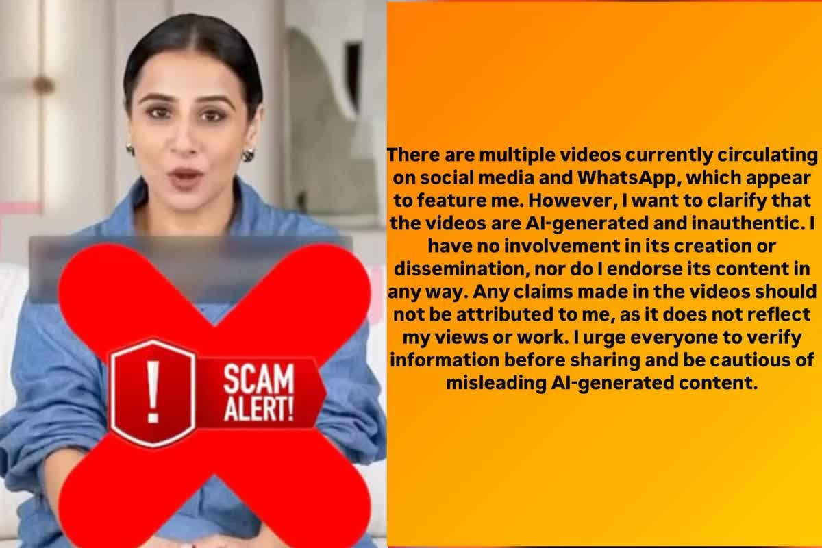 ಈ ವೀಡಿಯೊಗಳಲ್ಲಿನ ಯಾವುದೇ ಹೇಳಿಕೆಗಳು ನನ್ನ ಅಭಿಪ್ರಾಯ ಅಥವಾ ಕೆಲಸವನ್ನು ಪ್ರತಿಬಿಂಬಿಸುವುದಿಲ್ಲ. ವಿದ್ಯಾ ಬಾಲನ್, “ಹಂಚಿಕೊಳ್ಳುವ ಮೊದಲು ಮಾಹಿತಿಯನ್ನು ಪರಿಶೀಲಿಸಲು ಮತ್ತು AI-ರಚಿಸಿದ ವಿಷಯವನ್ನು ದಾರಿ ತಪ್ಪಿಸುವ ಬಗ್ಗೆ ಜಾಗರೂಕರಾಗಿರಲು ನಾನು ಪ್ರತಿಯೊಬ್ಬರನ್ನು ಕೋರುತ್ತೇನೆ” ಎಂದು ಹೇಳಿದರು.
