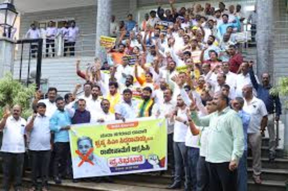 ಮುಖ್ಯಮಂತ್ರಿ ಸಿದ್ದರಾಮಯ್ಯನವರ ರಾಜೀನಾಮೆಗೆ ಆಗ್ರಹಿಸಲಾಯಿತು.ಬಿಜೆಪಿ ರಾಜ್ಯಾಧ್ಯಕ್ಷ ಮತ್ತು ಶಾಸಕ ಬಿ.ವೈ. ವಿಜಯೇಂದ್ರ ಅವರ ಕರೆಯನ್ವಯ ಪ್ರತಿಭಟನೆ ನಡೆಯಿತು.ವಿರೋಧ ಪಕ್ಷದ ನಾಯಕ ಆರ್. ಅಶೋಕ್, ಉಪ ನಾಯಕ ಅರವಿಂದ ಬೆಲ್ಲದ, ವಿಧಾನಪರಿಷತ್ ವಿಪಕ್ಷ ನಾಯಕ ಛಲವಾದಿ ನಾರಾಯಣಸ್ವಾಮಿ, ಸಂಸದರು, ಶಾಸಕರು ಮತ್ತು ವಿಧಾನಪರಿಷತ್ ಸದಸ್ಯರು ಉಪಸ್ಥಿತರಿದ್ದರು.