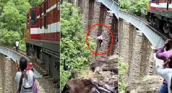 ರಾಜಸ್ಥಾನದ ಪಾಲಿ ಜಿಲ್ಲೆಯ ಜೋಗ್ಮಂಡಿ ರೈಲ್ವೆ ಸೇತುವೆಯಲ್ಲಿ ಫೋಟೋ ಶೂಟ್ ಮಾಡುತ್ತಿದ್ದ ಪತಿ ಮತ್ತು ಪತ್ನಿ ರೈಲು ಬರುತ್ತಿರುವುದನ್ನು ನೋಡಿ ಭಯಭೀತರಾಗಿ ತಪ್ಪಿಸಿಕೊಳ್ಳಲು 90 ಅಡಿ ಆಳದ ಕಂದಕಕ್ಕೆ ಹಾರಿದ್ದಾರೆ.