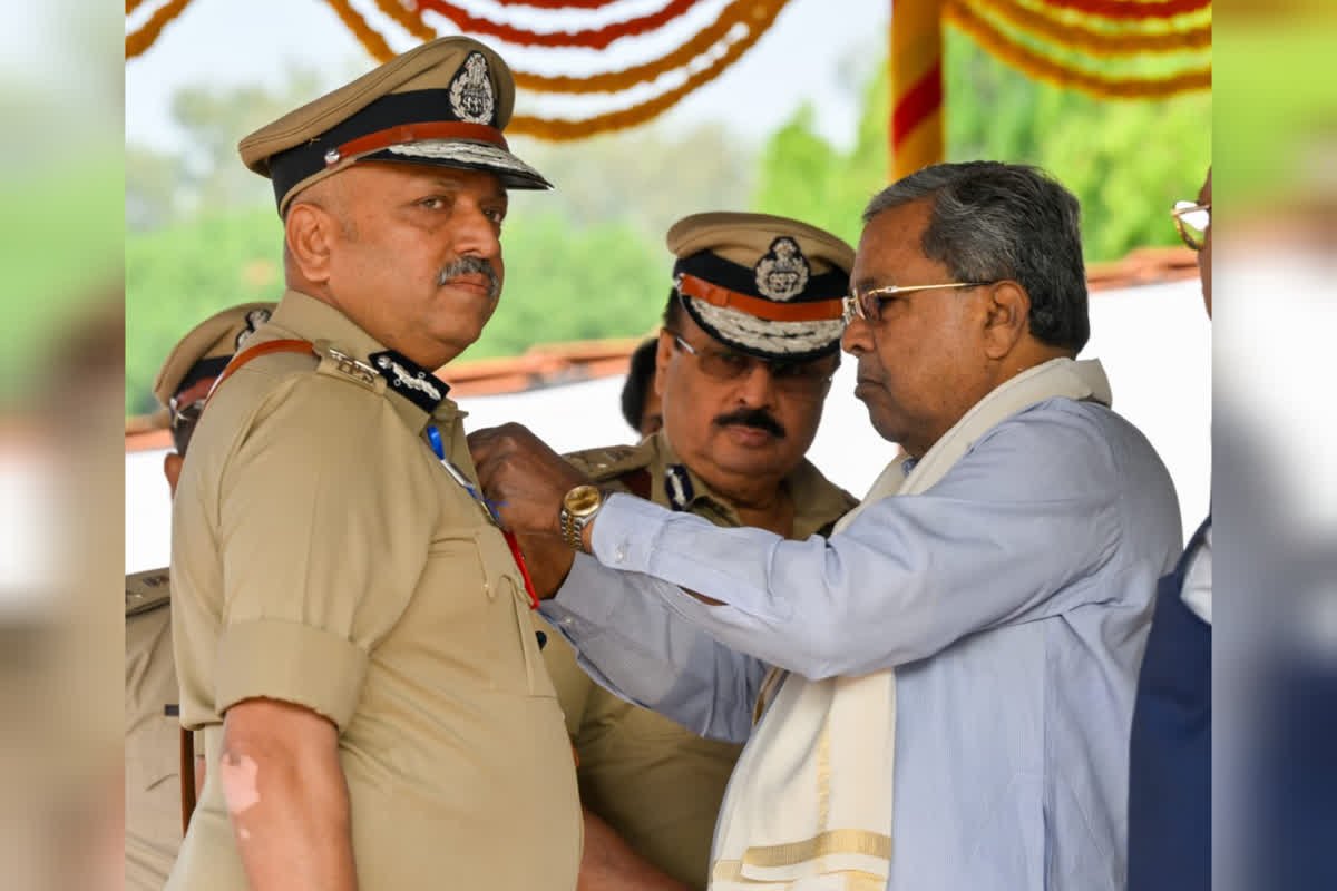 ಬೆಂಗಳೂರಿನ ಫೀಲ್ಡ್ ಮಾರ್ಷಲ್ ಮಾಣಿಕ್ ಷಾ ಪರೇಡ್ ಮೈದಾನದಲ್ಲಿ ಬುಧವಾರ ಬೆಳಗ್ಗೆ ಪೊಲೀಸ್ ಧ್ವಜ ದಿನಾಚರಣೆ ಸಮಾರಂಭದಲ್ಲಿ ಪದಕ ಪ್ರದಾನ ಮಾಡಲಾಯಿತು.