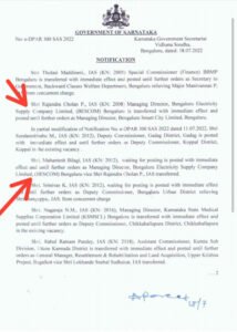 ವರ್ಗಾವಣೆ ಮಾಡಲಾದ ಜಿಲ್ಲಾಧಿಕಾರಿಗಳ ವಿವರ