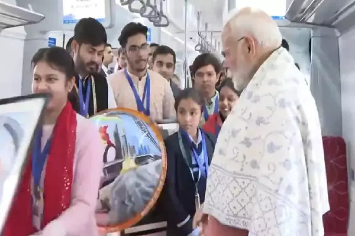 ನವದೆಹಲಿ: ನವದೆಹಲಿ-ಮೀರತ್ ಪ್ರಾದೇಶಿಕ ಕ್ಷಿಪ್ರ ಸಾರಿಗೆ ವ್ಯವಸ್ಥೆಯ ಭಾಗವಾಗಿರುವ ನಮೋ ಭಾರತ್ ರೈಲಿನಲ್ಲಿ ಪ್ರಧಾನಿ ನರೇಂದ್ರ ಮೋದಿ ಇತ್ತೀಚೆಗೆ ಪ್ರಯಾಣಿಸಿದರು. ಅವರು ಸಾಹಿಬಾಬಾದ್ನಿಂದ ನ್ಯೂ ಅಶೋಕ್ ನಗರಕ್ಕೆ ಪ್ರಯಾಣಿಸಿದರು, ಪ್ರಯಾಣಿಕರೊಂದಿಗೆ ತೊಡಗಿಸಿಕೊಂಡರು ಮತ್ತು ಶಾಲಾ ಮಕ್ಕಳನ್ನು ತಮ್ಮ ಅಧ್ಯಯನದ ಮೇಲೆ ಕೇಂದ್ರೀಕರಿಸಲು ಮತ್ತು ಪರಿಸರ ಸ್ನೇಹಿ ಸಾರಿಗೆಯನ್ನು ಬಳಸುವಂತೆ ಕರೆ ನೀಡಿದರು.