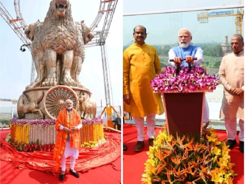 ಹೊಸದಾಗಿ ನಿರ್ಮಾಣವಾಗುತ್ತಿರುವ ಸಂಸತ್ ಭವನ ಕಟ್ಟಡದ ಛಾವಣಿಯ ಮೇಲೆ ಸ್ಥಾಪಿಸಲಾಗಿರುವ ರಾಷ್ಟ್ರೀಯ ಲಾಂಛನ ಪ್ರತಿಮೆಯನ್ನು ವಿಶೇಷ ಪೂಜೆ ಸಲ್ಲಿಸಿ ಪ್ರಧಾನಿ ನರೇಂದ್ರ ಮೋದಿ ಲೋಕಾರ್ಪಣೆ ಮಾಡಿದ್ದಾರೆ.