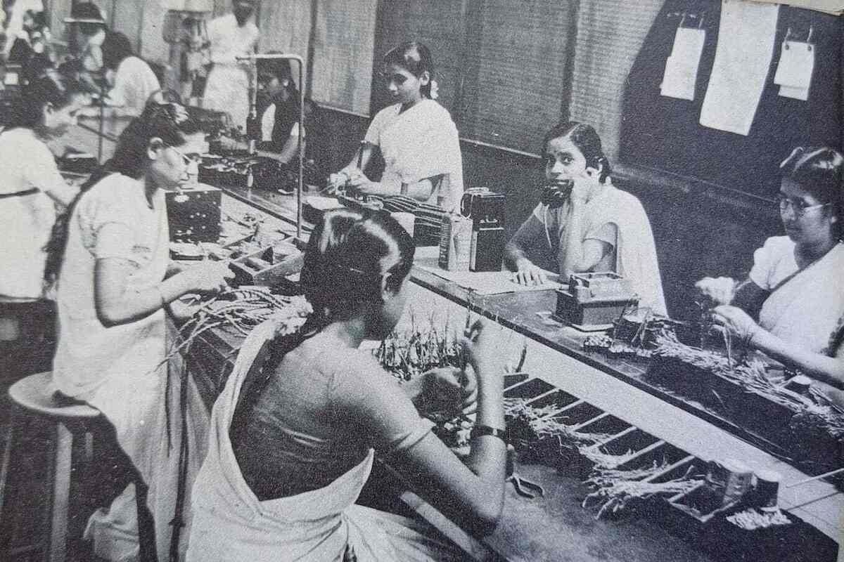 ಜನಪ್ರಿಯ ಹ್ಯಾಂಡಲ್ ಇಂಡಿಯನ್ ಹಿಸ್ಟರಿ ಪಿಕ್ಚರ್ಸ್ ಹಂಚಿಕೊಂಡ ಈ ಚಿತ್ರವು ಭಾರತದ ಆರಂಭಿಕ ಕೈಗಾರಿಕಾ ಯುಗದ ಗಮನಾರ್ಹ ನೋಟವನ್ನು ನೀಡುತ್ತದೆ. ಇದು ಐಟಿಐ ಒಳಗೆ ದೂರವಾಣಿ ಘಟಕಗಳನ್ನು ನಿಖರವಾಗಿ ಜೋಡಿಸಿ, ತಮ್ಮ ಕೆಲಸದ ಸ್ಥಳಗಳಲ್ಲಿ ಕುಳಿತಿರುವ, ಸಾಂಪ್ರದಾಯಿಕ ಸೀರೆಗಳನ್ನು ಧರಿಸಿರುವ ಮಹಿಳೆಯರ ಗುಂಪನ್ನು ಸೆರೆಹಿಡಿಯುತ್ತದೆ.