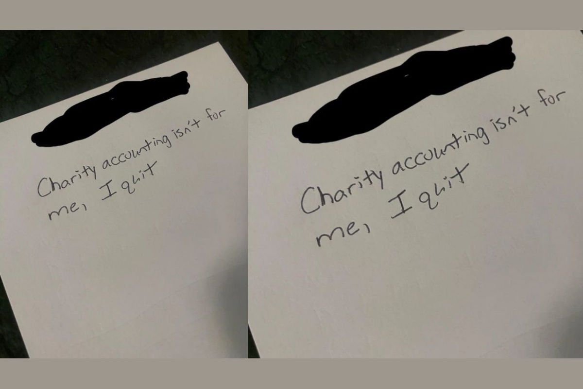 ರೆಡ್ಡಿಟ್ ಬಳಕೆದಾರರೊಬ್ಬರು “recruiting hell” ಎಂಬ ತಮ್ಮ ಅಕೌಂಟ್ನಲ್ಲಿ ಈ ರಾಜೀನಾಮೆ ಪತ್ರದ ಫೋಟೋವನ್ನು ಹಂಚಿಕೊಂಡಿದ್ದಾರೆ. ಅದರಲ್ಲಿ, “ಲೆಕ್ಕಪತ್ರ ನಿರ್ವಹಣೆ ನನ್ನಿಂದ ಅಸಾಧ್ಯ. ನಾನು ರಾಜೀನಾಮೆ ನೀಡುತ್ತೇನೆ” ಎಂದು ಕೇವಲ ಏಳು ಪದಗಳಲ್ಲಿ ಬರೆಯಲಾಗಿತ್ತು. ಈ ಪತ್ರವು ಅವರ ಸಹೋದ್ಯೋಗಿಯ ಟೇಬಲ್ ಮೇಲೆ ಸಿಕ್ಕಿತ್ತು ಎಂದು ಹೇಳಲಾಗಿದೆ.