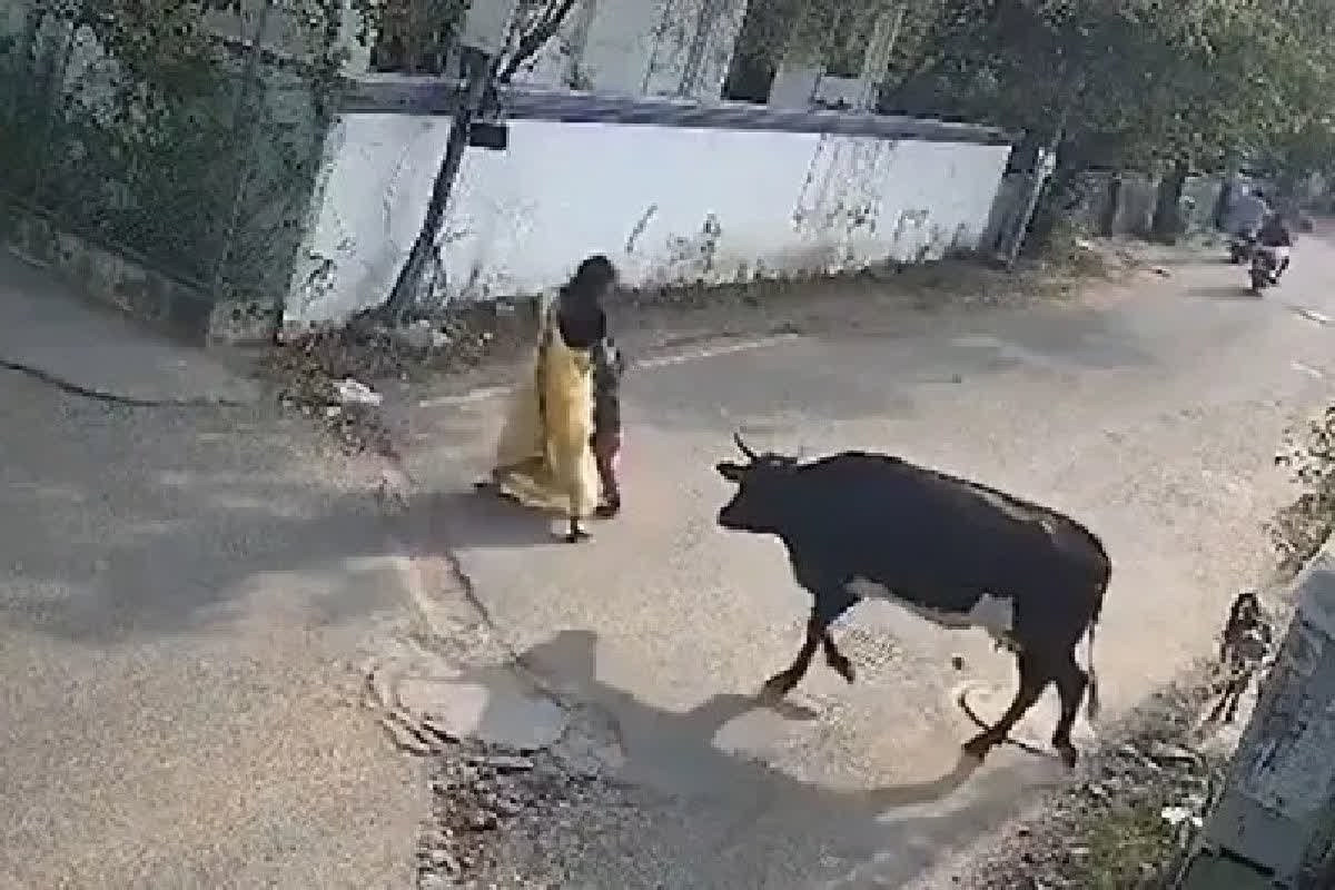 ತಾಯಿ ಮತ್ತು ಮಗುವಿನ ಮೇಲೆ ಬಿಡಾಡಿ ದನ ದಾಳಿ; ಸಿ.ಸಿ.ಟಿ.ವಿ ದೃಶ್ಯ ಸೆರೆ