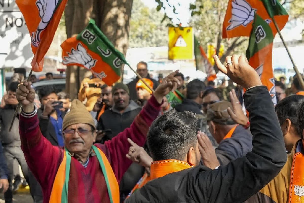 26 ವರ್ಷಗಳ ಬಳಿಕ ನಿರ್ಣಾಯಕ ಜನಾದೇಶದೊಂದಿಗೆ ಕೇಸರಿ ಪಕ್ಷವು ರಾಷ್ಟ್ರ ರಾಜಧಾನಿಯಲ್ಲಿ ಅಧಿಕಾರಕ್ಕೆ ಮರಳುತ್ತಿರುವುದನ್ನು ಇತ್ತೀಚಿನ ಎಣಿಕೆ ಪ್ರವೃತ್ತಿಗಳು ತೋರಿಸಿದ್ದರಿಂದ ಬಿಜೆಪಿ ಬೆಂಬಲಿಗರು ದೆಹಲಿ ಪ್ರಧಾನ ಕಚೇರಿಯ ಹೊರಗೆ ಸಂಭ್ರಮಾಚರಣೆ ನಡೆಸಿದರು.