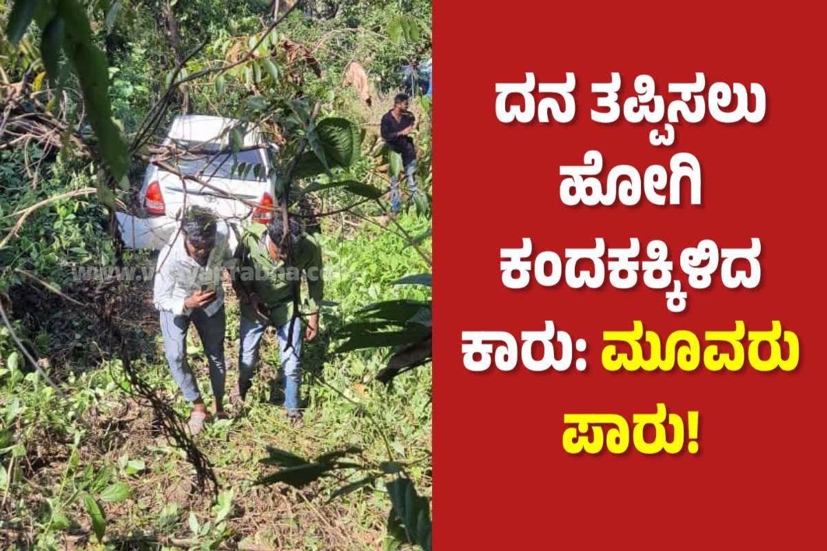 Car Accident: ಜಾನುವಾರು ತಪ್ಪಿಸಲು ಹೋಗಿ ಕಂದಕಕ್ಕೆ ಇಳಿದ ಕಾರು!