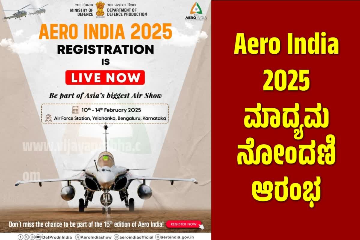 View More Aero India-2025ʼಕ್ಕೆ ಮಾಧ್ಯಮ ನೋಂದಣಿ ಆರಂಭBreaking : PUC EXAM ರಿಜಿಸ್ಟ್ರೇಷನ್ ದಿನಾಂಕ ವಿಸ್ತರಣೆ